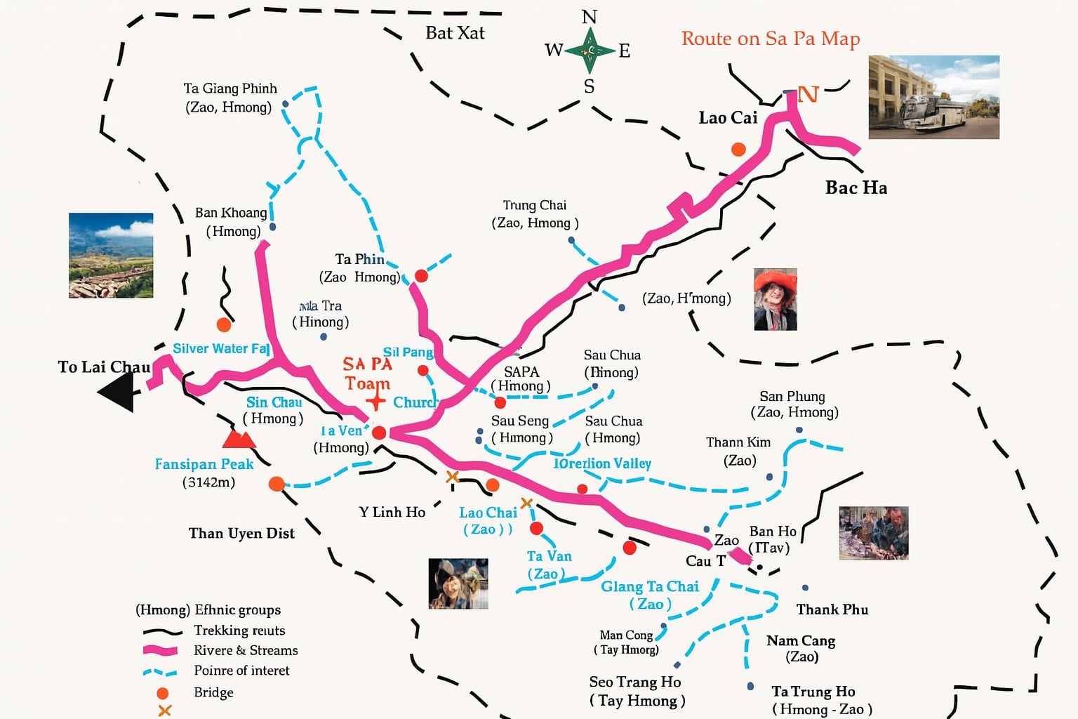 We will visit 2 villages of the red Dzao and the H’mong (Giang Ta Chai & Su Pan). After, we will visit a beautiful waterfall and rattan bridge. Enjoy scenic landscapes through bamboo forests on the way to the main road to get a car to Sapa.